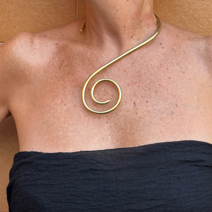 Choker de hilo de latón de 5mm protegido. Tiene forma de espiral en la parte central.
